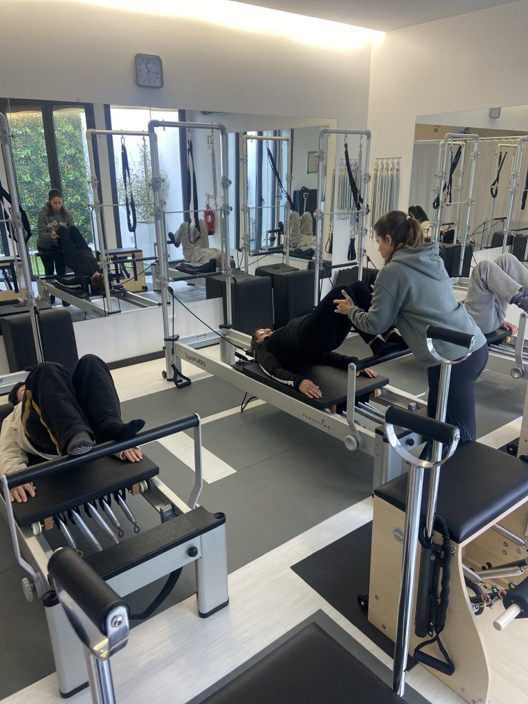 Pilates de Máquinas (Estúdio): Com equipamentos específicos como o Reformer e a Chair, que funcionam com um sistema de molas e cordas, que promovem assistência ou resistência na execução dos exercícios.